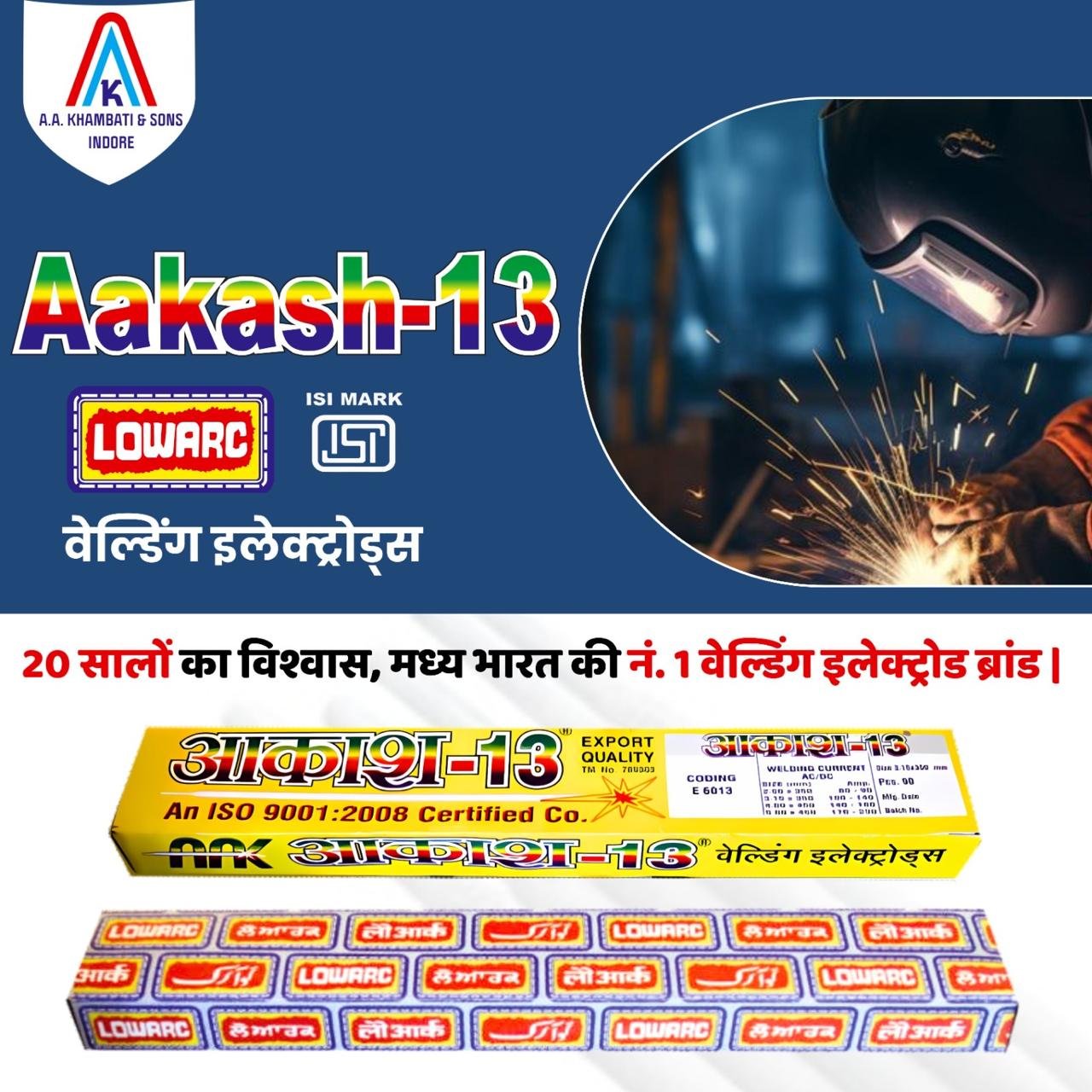 - Shri Rathi Industries, Kota: We supply the Aakash-13 ISI brand, known for its reliability and superior performance in a variety of welding applications.